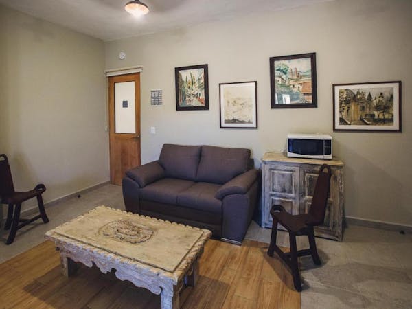 La Suite Prosperidad posee habitación y sala separada, 2 TV-Cable de pantalla plana (una en recámara y otra en sala), cocineta separada de la habitación con zona de lavado, microondas, horno eléctrico, refrigerador y cafetera.