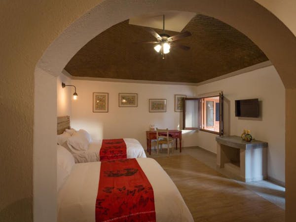 Algunas habitaciones de dos camas poseen techos abovedados.